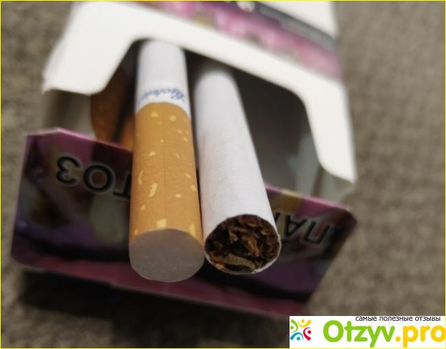 Сигареты тоже имеют классический формат. Фильтр у них самый простой, ацетатный, в жёлтой бумаге. Странно, но производитель на протяжении стольких лет не сделал ни одного шага по пути к улучшению фильтра. Табак внешне качественный, но набивка по плотности и аккуратности средняя. На вкус табак тоже средний, с приемлемой крепостью. Это не эконом табак, от которого хочется плеваться и кашлять, но все равно он немного горчит и от него остается неприятное послевкусие. Да и табачным запахом после выкуривания несет очень явно.