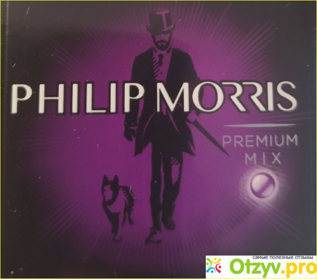На лицевой стороне имеется изображение мужчины в цилиндре с собачкой, явно какой-то джентльмен из Старого Света. Плюс, пачка очень яркая, фиолетового оттенка. Пачка имеет компактные размеры. Внутри пачки лежит стандартное количество сигарет (20 штук). Фильтр у сигарет многокомпонентный, с мундштуком. Внутри фильтра находится вкусоароматическая капсула. Фильтр также имеет изображение мужчины, а еще кнопку (чтобы знать, где давить на капсулу). Табак в сигаретах смесовой, набит не очень плотно (в пачке точно есть просыпавшийся табак.