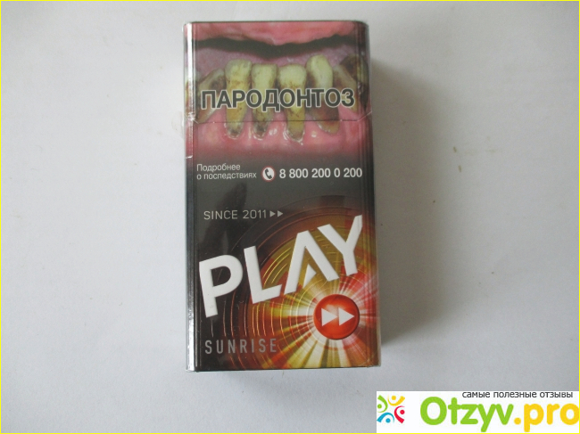 Но не буду дразнить модераторов. Знакомьтесь: сигареты Play Sunrise, (Плей Санрайз). Дизайн пачки яркий, броский, молодежный. В пачке 20 сигарет, они тоньше обычных и чуть короче, (формат Queen Size), из-за чего пачка тоже компактней обычной.