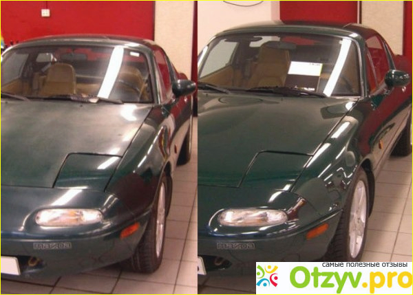 Небольшое отступление, меня это еще заинтересовало потому что цвет авто у меня темный (цунами - если кто не знает это такой металлик темно зеленого цвета). А содержать авто темного цвета сами понимаете не так легко, и раньше я использовал воск на основе так называемого карнауба - это дерево такое и оно действительно работало, цвет становился более глубоким и более блестящим небольшие коцики на лкп она скрывала и воду отталкивало, но конечно это длилось не так долго (где то на месяц хватало эффекта) и именно поэтому я заинтересовался. Ведь это все физика, чем более гладкая поверхность тем меньше на нем задерживается пыль грязь и всякая вода. И так мое жидкое стекло пришло и мне не терпелось использовать его и посмотреть какой будет эффект. Изучив инструкцию тщательно я приступил к нанесению. Как раз я давно уже не наносил воск на лкп и он уже потерял блеск и глубину цвета. Машина не новая конечно но для своих лет лкп сохранилось хорошо, хорошо но не отлично и цвет не такой глубокий был и микроцарапины от мойки и движения по трассе. Без сильно глубоких царапин. В общем я помыл хорошенько машину и высушил, обезжирил каждую деталь и начал наносить на авто. Когда я закончил я не сразу увидел результат, т. к. делал все это дело в гараже, а там освещение не очень хорошее. Когда жидкое стекло хорошо подсохло и я выехал на улицу где света было достаточно, я был просто в восторге от эффекта. Тщательно просматривал места где раньше было много царапин и они меня просто раздражали их не было. Не то что они исчезли или лкп стало новое но на глаз без какой либо оптики, не вооруженным глазом машино действительно выглядела как свежепокрашенная или отполированная спецами. Цвет стал глубокий, блеск как от зеркала. Выехал на дорогу, все взгляды были на авто)) Знакомые и друзья спрашивали: ты что покрасил?. Все были в восторге и удивлялись тому как машина блестела. Взял воду и показал как вода стекает. Езжу уже около 9 мес и до сих пор ЛКП не потеряло блеск и выглядит как после полероки. Если честно то я даже не ожидал такого долговременного эффекта. Думал хватит ну месяцев на 3 максимум. Машина пачкается гораздо дольше. Мыть стало легче. Итог: покупкой очень доволен, жидкое стекло действительно работает. Конечно от сильных царапин оно не защитит, не нужно быть наивными. Ставлю 5 звезд и рекомендую. Конечно же остерегайтесь подделок.