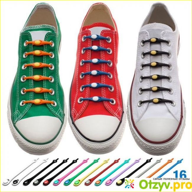 Вот что из себя представляют силиконовые шнурки. Размер одинаковый, они эластичные, немного тянутся, у них удобное крепление, материал довольно качественный, есть различные варианты расцветок. Можно создать любой образ, хоть разноцветные шнурки купить, хоть одноцветные.