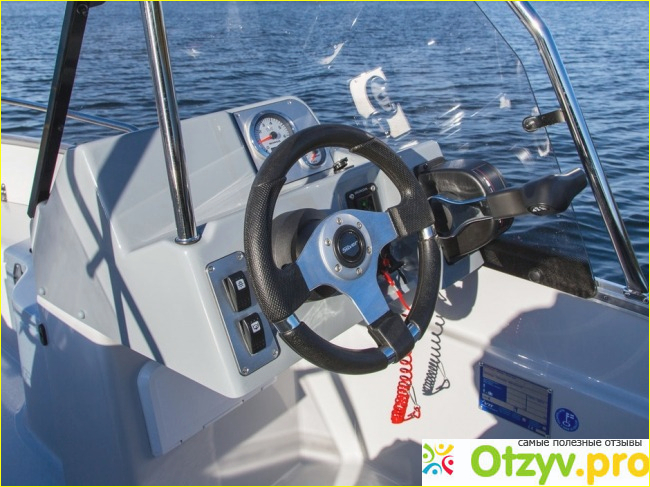 пульт управления; конструкция с открытым помещением, предусматривающая автоматический слив воды, о котором выше говорилось; бензиный бак объемом 70 л; огни (ходовые и якорный); панель с наличием предохранителей; управление посредством руля; чехол для упаковки аккумулятора и сопутствующих кабелей; регулируемые сиденья чашевидной формы; огнетушитель; указатель топливного уровня; ветровые стекла; помпа для осуществления откачки воды, работающая от электричества; напряжение сети на борту мощностью 12В; поручни, изготовленные из нержавеющей стали; откидывающиеся дверцы, а также стекло между консолями, огнетушитель, отсек для хранения вещей.