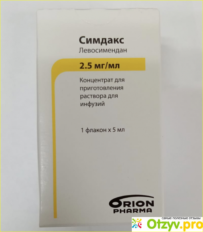 Я не зря взяла в качестве примера лекарственный препарат Симдакс, он содержит в составе активное вещество левосимендан в дозировке по 2,5 мг. Выпускается лекарство в форме концентрата для приготовления раствора для инфузий, она прозрачная. Относится к кардиотоническим веществам, то есть повышает чувствительность сократительных белков кальция, повышает силу сердечных сокращений, но не расслабляет желудочки сердца. Оказывает сосудорасширяющие действия, в особенности на артерии и вены, в их числе и на коронарные. Благодаря активному веществу он благоприятно сказывается на сердечном миокарде, повышает его выносливость, силу сердечного удара, уменьшает преднагрузку или постнагрузку.
