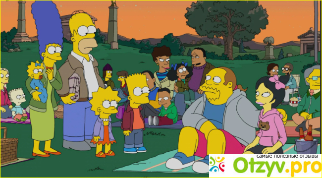 А теперь пару слов про юмор: он просто шедевр! Так точно, метко, емко — сомнений нет, это талант! Сценарий, безусловно, написан талантливейшим человеком — начиная от текста заканчивая сама поведением этих самых Симпсонов. Уж как они все говорят, делают или вообще — просто себя показывают — раньше ничего подобного даже просто не было! Это уникальная лента, не похожая ни на одну другую, ни на один мультфильм.