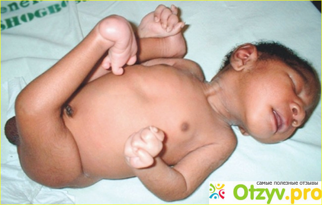 Вообще этот синдром очень известен и в этом же жанре он может уступить только синдрому дауна, который еще популярнее, чем этот. У новорожденного с таким диагнозом меняется форма черепа, меняется форма нижней челюсти, неправильно развивается неба, пальцы имеют неправильную форму и вообще он е похож становится на человека, также пальцы у него могут быть сросшиеся. Вообще этот человек, а точнее человек с таким синдромом просто начинает развиваться неправильно, не так как все другие здоровые новорожденные.