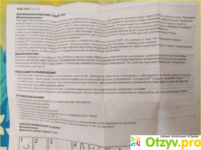 С чиханьем отходила слизь и наверное кусочками, как ошметками- гной, что-то светло-желтое. Ощущения и виды не из приятных, но уже утром я осознала, что дышать мне легче. Дня через 4-5 нос вообще свободно дышал, без намека на длительную болезнь. Доделала курс до конца, осталась примерно треть флакона, выкидывать было очень жалко). Так что, если Вас мучит длительный насморк или синусит, если есть подозрение на гайморит, то не жалейте денег и купите Синуфорте спрей.