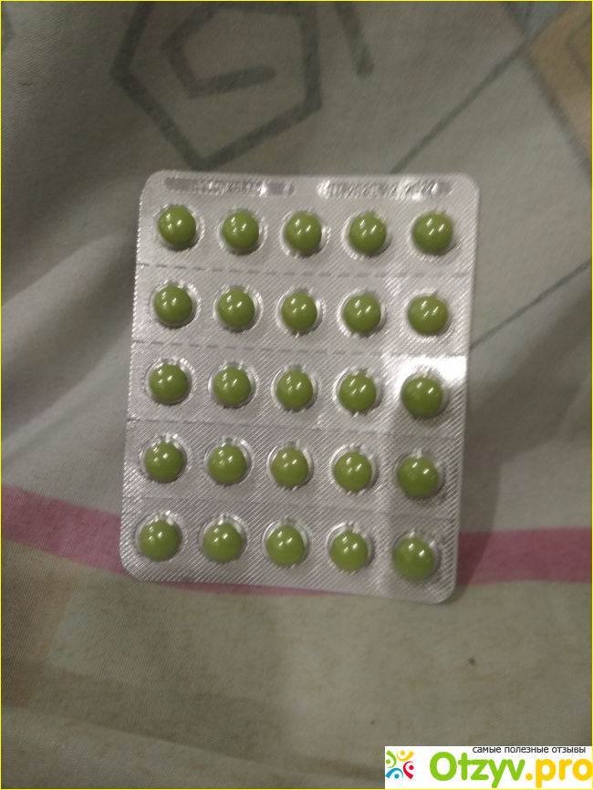 Картонная коробка на 50 таблеток, 2 блистера по 25 таблеток. Таблетки маленькие, зеленого цвета, проглатываются без проблем. Принимать необходимо согласно рекомендациям врача. Обычно принимаю недели две-три, 3 раза в день по 2 таблетки.