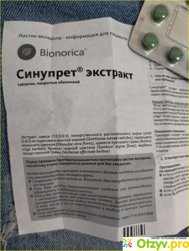 Таблетки среднего размера, в оболочке, зеленого цвета. Принимать необходимо по 1 таблетке 3 раза в день, не запутаешься) Состав полностью растительный, есть такие компоненты как горечавка, щавель, бузина и тд. именно за счет этих компонентов, синупрет делает жиже слизь, ей легче выходить, отек и воспаление проходит.