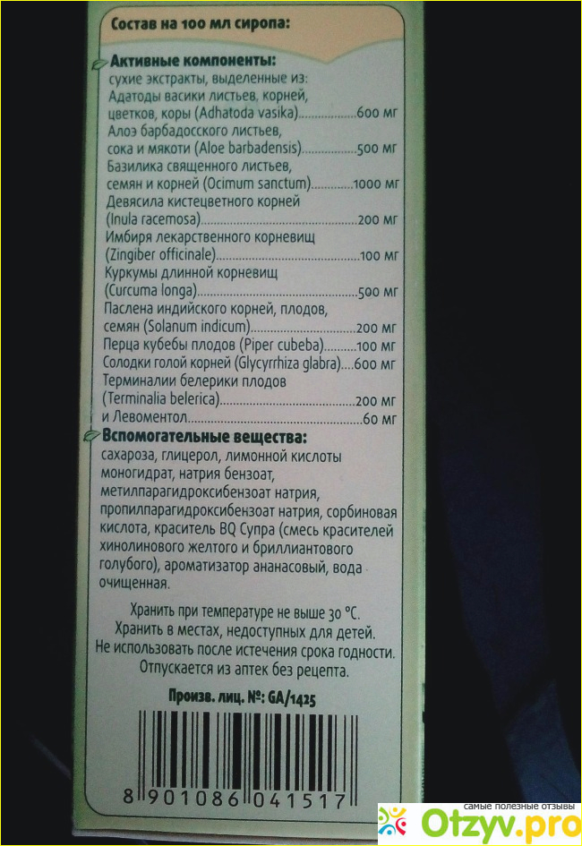 Сироп производится в Индии, в нем очень много натуральных экстрактов трав.
