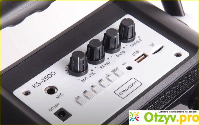 Я конечно не беру в расчет именитых брендов и дорогие портативные системы, но всё равно больших отличий кроме, как в качестве звука у них никаких нет. Везде есть блютус, включение флешки или карты-памяти, аккумулятор и в принципе всё. Поэтому, когда появляется на рынке устройство с необычным функционалом — это всегда интересно. Про первый такой новый прибор, который представляет из себя колонку с большим аккумулятором и необычными способностями я и хочу рассказать. Это модель Atom Evolution KS 1500, которая представляет из себя караоке-систему, причём не простую, а переносную. Её можно взять с собой не только куда-нибудь на пикник, но и на любое мероприятие, в гости или просто на прогулку. У аппарата запоминающийся дизайн и интересный внешний облик. Но пока начну обо всём по порядку и расскажу о технических характеристиках данного устройства.