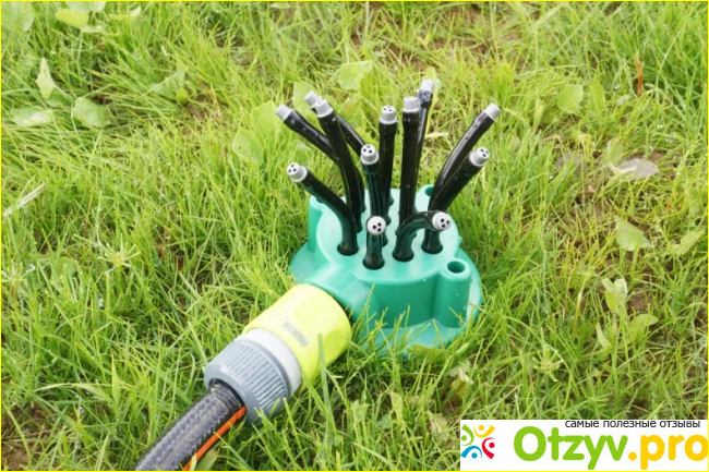 Такая большая площадь покрытия образуется благодаря особенному строению системы — это 12 головок, орошающих пространство вокруг себя.