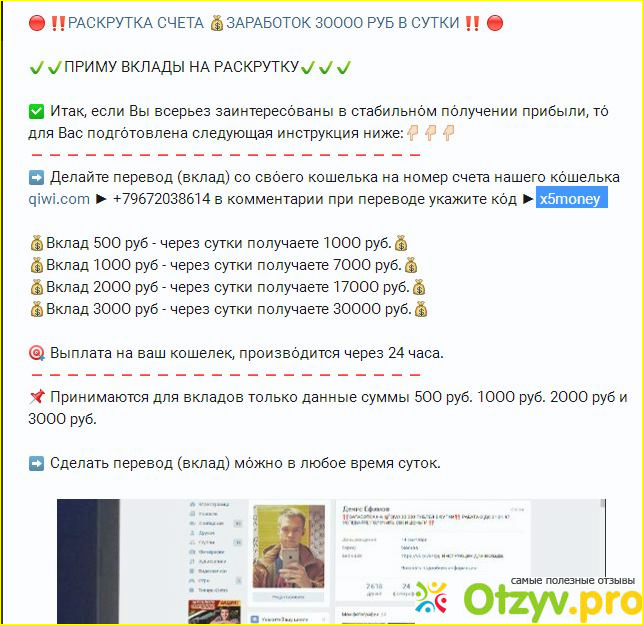 Пишу очередной отзыв опробовав систему по дополнительному заработку в интернете. Система эта называется х5monеy. Организатор этой системы некий Денис Ефимов, который принимает вклады на раскрутку на QIWI кошельке.