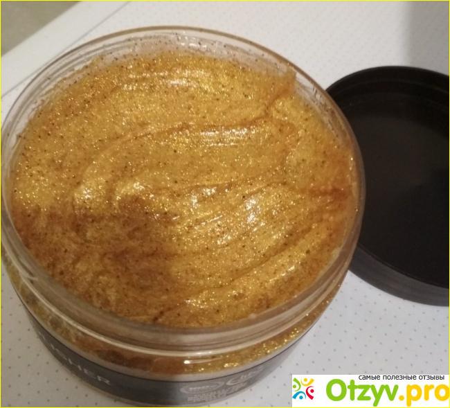 Аромат очень выраженный и сохраняется на коже даже после того как ванна закончена. На коже я замечаю небольшой золотой шиммер, хотя все блестки успешно смываются. Еще один аспект 0 скраб богат маслами. И после его использования кожу можно уже не увлажнять другими средствами, однако потребуется некоторое время для того, чтобы произошло полное впитывание. Могу рекомендовать данный продукт, если вы предпочитаете мягкие скрабы. Мне не хватило именно эффекта очищения, поэтому я не буду покупать данное средство повторно, и меня не прельстят даже золотистые блестки.