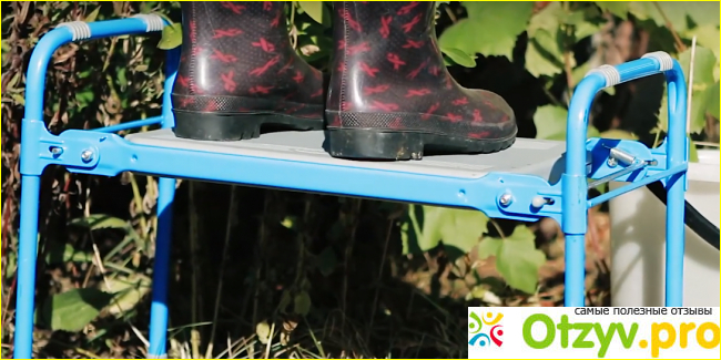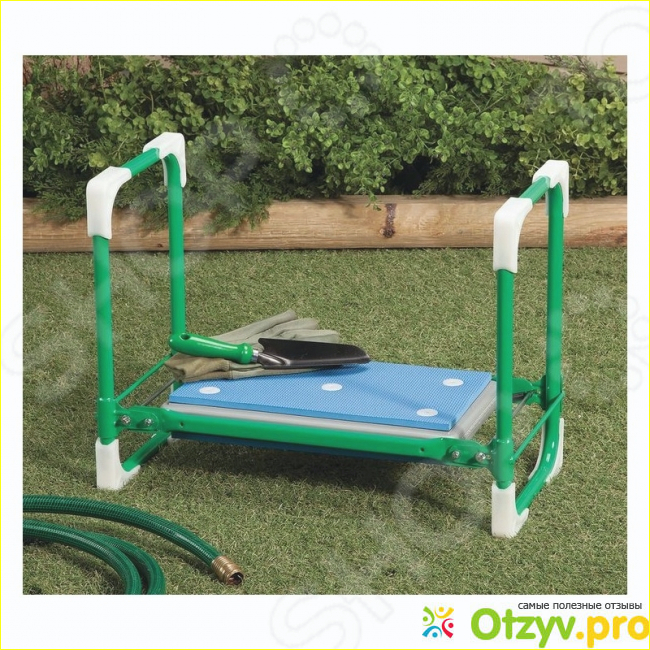 Причем 100 кг это приблизительный параметр, который может выдержать данная скамья. некоторые покупатели испытывали на данном изделие и больший вес и она отлично прошла испытание. Также хочется отметить, что в этой модели очень хорошо подобрана высота в каждом из положений. Когда ее используешь в качестве обычной скамейки, то у нее диет такая высота, чтобы ногам было комфортно сидеть на ней и они слишком сильно не поднимались в верх. А когда ее используется в качестве подставки под колени, то она не сильно высоко поднимается над землей и тем самым человек не пачкается во время выполнения земляных работ. А для того, чтобы удобнее было вставать в колен и этой модели предусмотрена по бокам достаточно высокие гредушки.