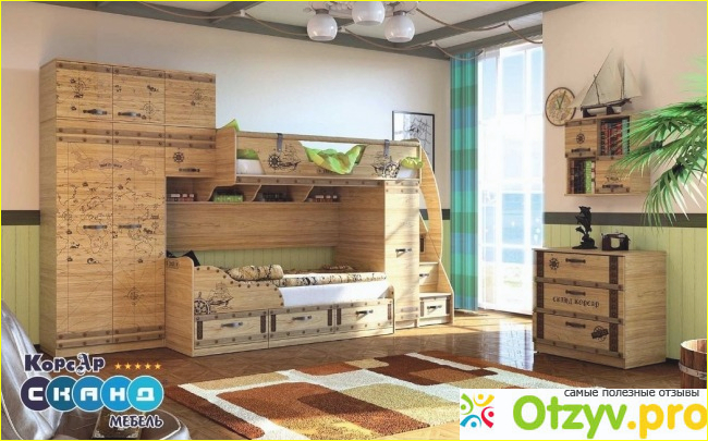 У меня двое парней в доме шести и восьми лет. Всегда старался им прививать правильные взгляды на мир и жизнь.. А по этому пути мне ещё трудится и трудится ). Сам всегда был романтиком немного в душе и детей хочу вырастить в романтичном героическом стиле, где должен быть здоровый авантюризм, дух приключений, уважительное отношение к дамам . А для этого нужна с детства и соответствующая обстановка! Поэтому когда мои ребятам понадобилась спальня, я начал ломать голову в каком стиле её обустроить. Сначала хотел в космическом, но это не совсем та романтика которую я люблю и хотел бы что бы она была связана с планетой и морем. Поэтому когда я случайно наткнулся на сайт Сканд-Мебель и увидел у них двухспальные комплекты для мальчиков "Корсар 4" , я сразу пришёл в восторг - это было то , что я искал! Двух-ярустная кровать как двухпалубная шхуна, ящики, будто корабельные сундуки, покрытие мебели под корабельное дерево, рисунки, парусник, всё было классно и в тему! Всё соответствовало одному стилю! Мне даже самому захотелось поспать там )). Поэтому я сразу заказал эту мебель. Когда её привезли и поставили - дети были в полном восторге! Да и мы с женой будто окунулись немного в детство. Теперь мы со старшим, клеим большой парусник, что бы наполнить ещё больше комнату антуражем морской романтики. И я теперь постоянно смотрю где бы что купить такое пиратское или морское, а на одном сайте даже нашёл штурвал и теперь хочу выписать его и повесить у ребят так что бы они могли крутить его )). Так что большое спасибо компании Сканд-Мебель, за такую хорошую придумку и замечательное воплощение. А то что это относительно дорого., так в детей надо вкладывать правильно деньги, что бы они выросли настоящими мужчинами и чуть-чуть романтиками, а это большой дефицит в наше время...