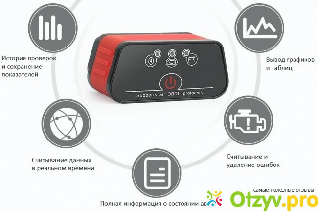 Казалось бы совсем маленький портативный диагностический адаптер не способен на многое. Однако именно он способен в любой момент выручить водителя при сложных поломках или же неисправностях. Мы уже говорили о простоте в использовании, но не упомянули про то, как легко с помощью всего лишь одной кнопки можно включить и выключить устройство. Нет необходимости проводить сложные манипуляции и каждый раз искать инструкцию. Всё предельно быстро и просто. Провести диагностику можно в режиме реального времени в буквальном смысле на ходу, не покидая водительское место.