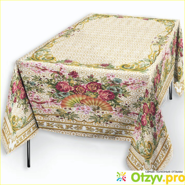 Хорошие эксплуатационные качества ткани — вот как это правильно называется. И, согласитесь, для скатерти это очень важно — ее можно часто стирать и гладить. Такая скатерть не боится бытовых бед — даже потереть от пятнышек ее можно, нити не порвутся, так как имеют повышенную крепость.