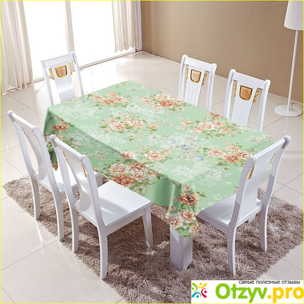 Скромная расцветка, приятная глазу — не броская, но в то же время сдержанно-красивая — такая скатерть будет хорошо смотреть на столе вне зависимости от дизайна комнаты.
