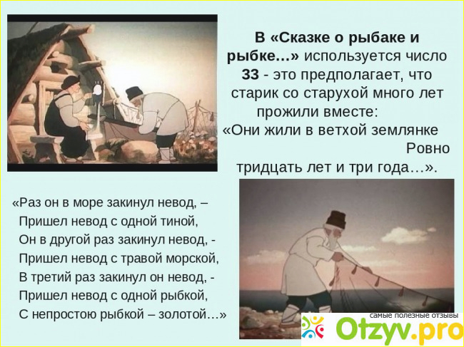 Подобная история существовала и у братьев Гримм. Там коварная старуха хотела стать папой Римским. Первоначально по замыслу автора старуха восседала на Вавилонской башне в тиаре Папы. "Не хочу я быть вольной царицей, Я хочу быть Римскою папой". Но он все же решил не включать это в конечную версию, чтобы сохранить русские корни и колоритность. Изначально Пушкин не предполагал писать свои сказки для детей. Хотя в последствии они стали именно детскими. Это был пик расцвета его творчества. Сюжет раскрывал традиции и верования представителей простого народа. Александр Сергеевич не скрывал что черпал идеи из собрания братьев Гримм. Он читал их и переписывал их в стихотворной форме на свой лад, внося любые изменения, которые ему нравились. Итак, в сказке всего два действующих лица. Это муж и жена, старик и старуха. Они прожили долгую и трудную жизнь и остались бедняками. Но, при этом они представляют собой диаметрально противоположные личности.