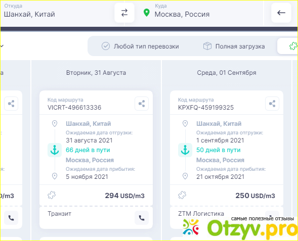 Достоинства: Много предложений от разных логистических компаний