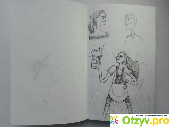 Я почти не рисую спиртовым маркерами, а остальные материалы не переходят на другую страницу. Поэтому этот артбук для меня идеален. Листов достаточно (98), прошло около 3 месяцев, а 3/4 блокнота еще свободны. Кроме того бумага позволяет рисовать с обеих сторон листа, что несомненно является плюсом.