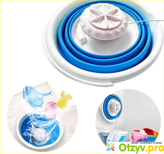 Складная машинка стирает при помощи ультразвука, имеет вид небольшого силиконового ведра, в нем и происходит процесс стирки. Такой прибор будет полезен абсолютно в любом месте. В комплексе идет USB кабель при помощи которого можно подключаться даже к аккумулятору машины. Поэтому, где бы вы ни находились, стирать сможете всегда. Даже если вы оказываетесь просто на природе, вдали от коммуникаций и цивилизации, вы всегда сможете постирать и не зависеть ни от чего.