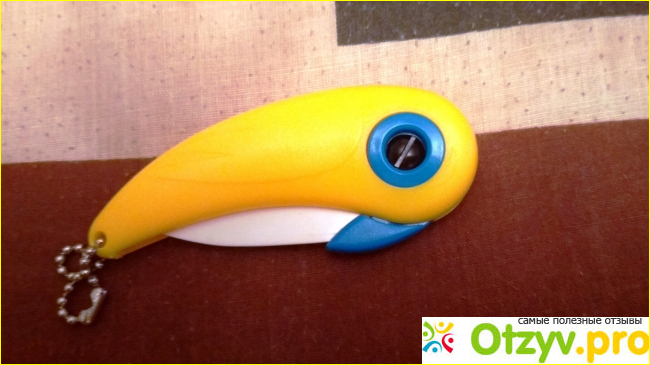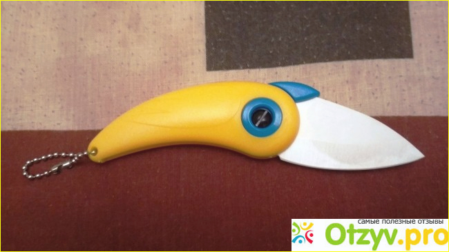 Нож изготовлен очень качественно, корпус его изготовлен из качественного пластика, у нас основной цвет – желтый, но бывают и другие цвета. Лезвие же у данного ножа керамическое - это высокой чистоты цирконий. Открывается и закрывается лезвие руками и довольно туго, но со временем он разрабатывается и открывается намного легче. К тому же, при желании упругость открывания можно подтянуть и это делается обыкновенной отверткой. Внешность, конечно, данного ножа очень оригинальная, просто удивляюсь Китайской прозорливости, создать такой интересный ножичек.