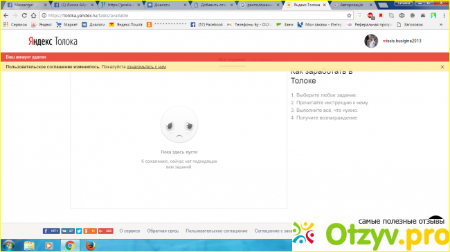 На новом аккаунте я уже читала правила по сто раз, сдавала тесты на оценки не ниже 90 из 100 но все повторилось по кругу- рейтинг падает неизвестно из за чего и заданий нету, на мои письма в поддержку объяснить почему мой рейтинг падает тишина, зашла в чат а там миллион сообщений с этой же проблемой. Здесь я проработала в суме недели три и заработала 15.40 долларов.