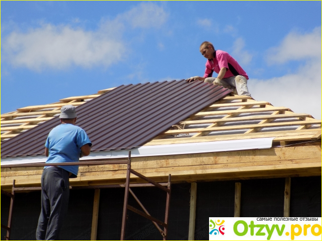 Следующим этапом идет выбор материалов для коробки своего дома. Известно много доступных для многих по цене и качеству строительных материалов. Есть генподрядные организации, которые сдадут вам объект под ключ, начиная от проектно-разрешительной документации, заканчивая подведением коммуникаций. Также есть вариант делать самому, нанимая специалистов узкого профиля на определенные виды работ. Имеются плюсы и минусы того или иного вида строительства, но если грамотно подойти к подготовке, выбору материалов и специалистов, то вы избежите много негативных моментов. Не буду вдаваться в подробности. Перейдем к основной сути нашего сегодняшнего отзыва - перекрытие крыши профнастилом.