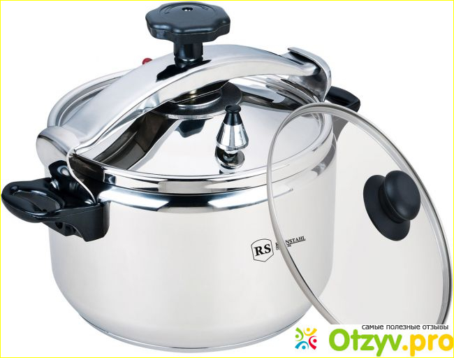 Под одной из таких скороварок является Скороварка Rainstahl 5600, которую я в своё время себе купила по совету подруги. Полное наименование моего изделия Rainstahl 5600-09RSPR, а объём составляет девять литров. Это довольно много, и можно реально приготовить еды на целую большую семью. Собственно это скороварка и рассчитано большое семейство, если готовить на 2-3 человека, то лучше брать изделие меньшей ёмкости. Чисто внешне скороварка смотрится как стандартная обычная кастрюля, однако у неё есть несколько особенностей. Благодаря крышке, которая очень плотно закрывается, удается сформировать посудине повышенное давление. Таким образом, температура кипящей жидкости значительно повышается, и все продукты варятся намного быстрее. Крышка пролегает очень плотно, благодаря специальному запорному механизму, а также уплотнительному кольцу. Когда скороварка закрыта, ты в процессе работы между стенками и ею не происходит просачивание пара. Таким образом, создается надежная герметизация и условия для повышения давления.