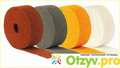 Скотч-брайт представляет собой нетканый материал, он шлифованный и обладает достаточно высокой твердостью и прочностью. По своей фактуре он напоминает войлок, только не плотный. Думаю, каждый видел и хотя бы раз пользовался губками для мытья посуды, так вот, та часть, которая имеет шершавое покрытие и представляет собой скотч-брайт.