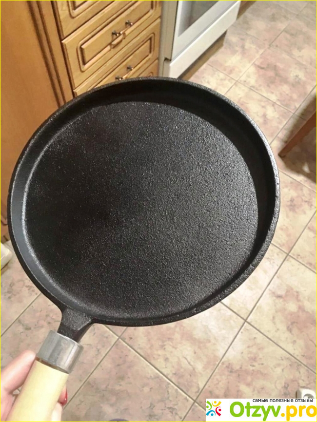 И рукоятка удобная, эргономичная, в руке лежит как влитой. При уходе не рекомендуется использовать металлические мочалки, абразивные чистящие вещества, металлические лопатки, не мыть в посудомоечной машине, не рекомендуется резать ножом или водить вилкой по покрытию. Желательно прокалить чугунную посуду после длительных перерывов в использовании