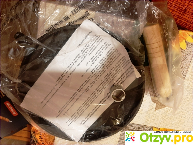 Упакована сковорода в красивую картонную коробку, все сделано аккуратно, красочно, приятно, что производитель прежде всего позаботился о правильной подаче своего товара. На поверхности коробки указаны все качества и свойства товара, диаметр сковороды 23 сантиметра. Преимуществом данной утвари является его универсальность, то есть им можно пользоваться даже на индукционных плитах. Конечно все упаковано тщательным образом, что еще больше вселяет уважение. Сама рукоятка у сковороды съемная и деревянная. На коробке указана инструкция как правильно его крепить. Деревянную часть с кольцом необходимо надеть на металлический штырь у основания. Просто и никаких сложностей нет. Резьба там примерно полтора сантиметра, именно поэтому рукоятка будет держаться максимально прочно. Вес сковороды не указан, но если подержать в руках, то сразу же видим, перед нами настоящий чугун. Тяжелый, черного цвета, не пористый, значит самый настоящий. Раньше были в хозяйстве именно такие чугунные посуды, однако когда сравнивала эту сковороду и другие свои сковородки советских времен, эта показалась для моей руки тяжелее. У меня не сразу получалось подбрасывать блины при запекании, но если приноровится, то получится подкидывать в воздух блины и переворачивать на лету.