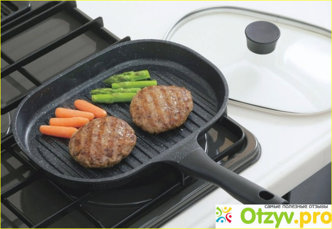 В сковороде можно баловать семью поджаристым стейком сочного мяса, вкусной рыбой, все возможными видами овощей, которые обжариваются в миг при этом практически не теряя полезные свойства, более того блюда получаются менее калорийными и жирными. Особенно данный вид приготовления не может не порадовать детей, так как создается впечатление что находишься на мини пикнике, при этом не выезжая за пределы своей кухни. Все же дабы радовать свою семью вкусностями, к выбору сковороды гриль нужно подойти со всей серьезностью, так как от этого зависит не только вкусовые качества блюд, но и длительность эксплуатации сковороды.