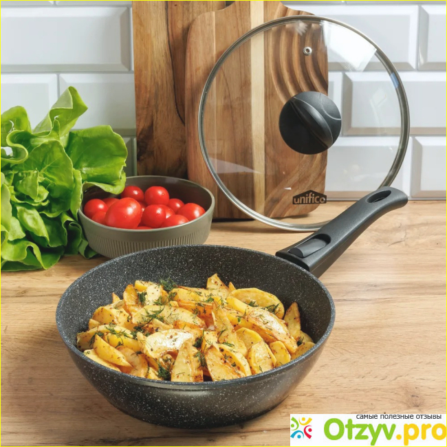 Покупала просто как небольшую сковороду со съемной ручкой, чтобы готовить омлеты в духовке, а сейчас из рук не выпускаю, любимая сковорода )) Жарит на капле масла и ничего не прилипает. Покрытие однозначно лучше, чем то что у меня раньше было. Очень гладкое и ровное, мешать еду удобно.