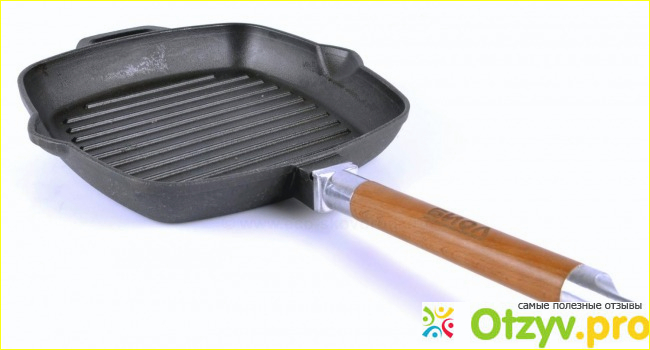 Сковородки у данной фирмы тоже выпускаются разные. Есть сковородки обычные литые с деревянными и металлическими ручками. Есть также и бакелитовые ручки (чаще всего они съемные). Ручки у сковородок бывают как съёмные, так и сплошные.