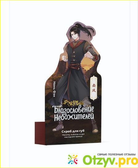 Снимает шелушение и удаляет старые и ненужные клетки. Так же после применения губы становятся мягкими, кожа более упругая. Разглаженная, одним словом. Прекрасный скраб, я любитель японской символики и знаю, кто такой Нань Фэн, люблю аниме. Советую попробовать, оцените на 100%. Наносить легко, массируйте и потом, остатки скраба уберите салфеткой. Все просто и понятно.