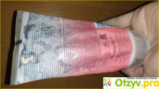 Тюбик с широкой стоячей крышечкой, его удобно ставить и он не займет много места. Поначалу тюбик мне показался удобным, но когда я использовала где-то 2/3 всего скраба его стало сложно выдавливать. Тюбик плотный и нужно очень хорошо постараться чтобы выудить остатки скраба. Треть тюбика выбрасывать жалко, поэтому приходится скручивать тюбик.