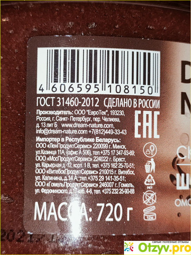 В составе нет ничего вредного. Скраб отлично обновляет кожу и удаляет омертвевшие клетки. Средство удобно наносить на кожу. Объем довольно большой, поэтому хватает одной баночки надолго. Запах исходит приятный, но, к сожалению, он быстро выветривается с кожи. Тело после использования выглядит свежим, а на ощупь мягким. Стоимость соответствует заявленному качеству. На момент покупки производитель был для меня неизвестным, но меня привлек именно аромат и скидка.