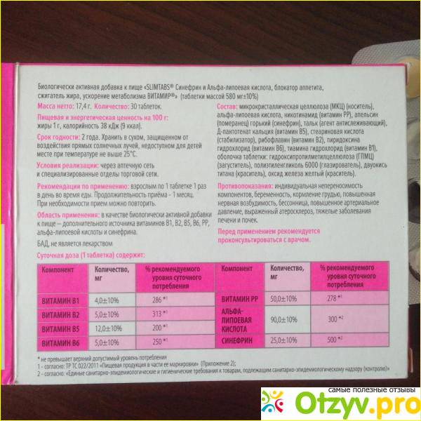 Но в составе Слимтабс содержатся не понятные вещества, какие именно группы витаминов содержатся не известно. Просто указано, что витамины группы В, но их очень много, поэтому конкретной информации не было получено. Когда человек начинает принимать препараты он просто обязан знать точный состав, ведь даже простой витаминчик может вызывать аллергическую реакцию и побочные явления. Производители обязаны это знать.