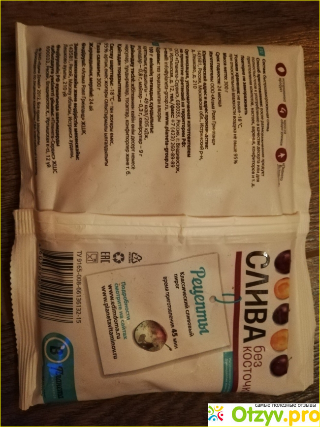 Плотная, надежная упаковка с нарисованной спелой сливой. Сделано в России, масса — 300 гр. Этого количества хватит наесться за глаза. Если нет, можно взять еще одну пачку. Но япредпочитаюесть разные фрукты, поэтому вместе со сливой взяла еще и вишню. О ней напишу в другом отзыве.