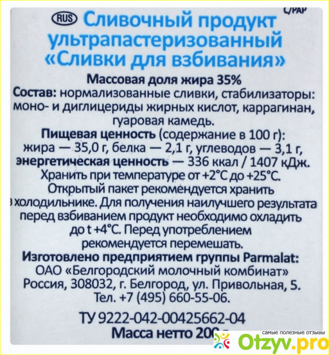Сливки данного торгового бренда Parmalat являются очень жирными, аж тридцать пять процентов, изготовлены из коровьего молока, они предназначены специально для их взбивания, на их основе зачастую готовят разнообразные десерты, крема, сливки и прочие вкусняшки в домашних условиях.