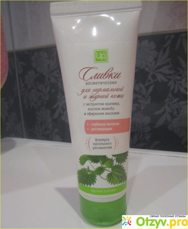 Очередной крымский экземпляр от Царства ароматов. Сливки косметические для нормального и жирного типа кожи с экстрактом крапивы, маслом жожоба и эфирными маслами.