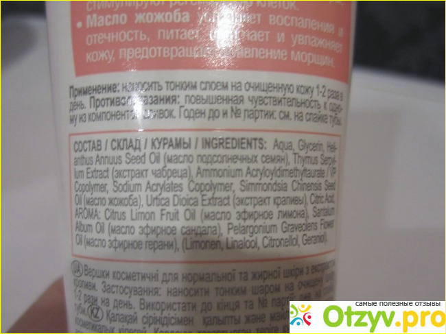 На обратной стороне очень мелким шрифтом расписаны эффекты от сливок и их состав.