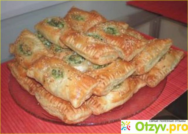Ещё один плюс данной выпечки, что в состав входит готовое слоёное тесто, так что пачкать руки и терять время на замес вам не придётся.