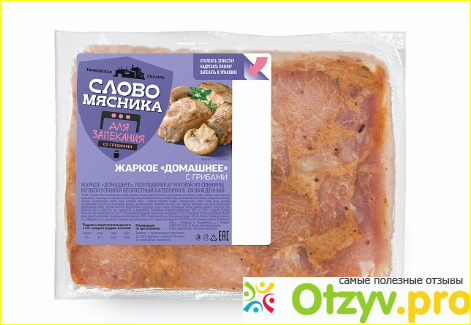 Грибов тоже достаточно. Благодаря маринаду хорошему оно быстро готовится и получается очень мягким. Пахнет аппетитно. Упаковку можно проколоть в нескольких местах, убрать этикетку и так запекать. Удобно, потому что посуда не пачкается и отмывать потом не приходится. Полноценное блюдо для ужина или обеда. И на скорую руку можно приготовить, стоять у плиты не надо. Сама свинина отлично сочетается с грибами. Продается много где по магазинам, удобно, что видно хорошо, что внутри упаковки. Маринада достаточно.