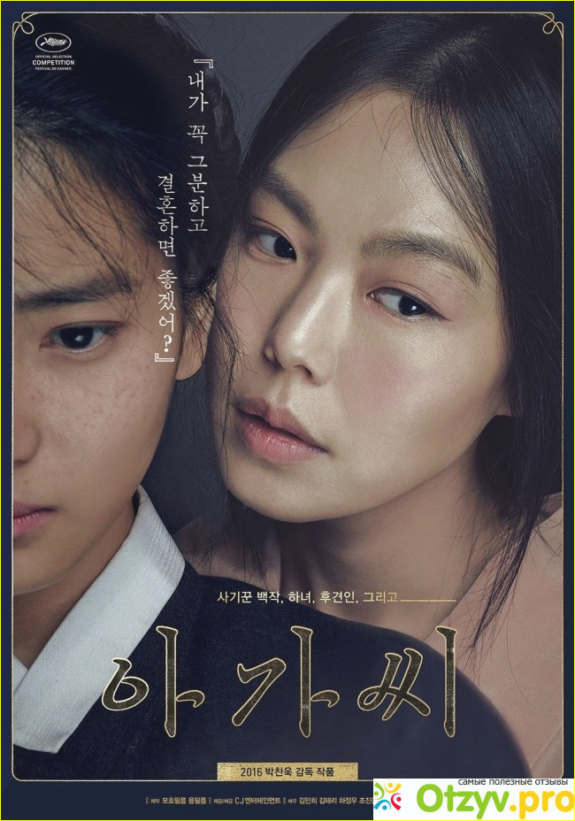 «Служанка», конечно, тоже не могла пройти мимо внимания, хотя ни синопсис, ни трейлер не давали точного представления о том, что же будет в фильме, — они не отражают смысла фильма, не передают его неповторимой атмосферы! Фильм не похож на все уже просмотренные мной, хотя основные приметы жанров триллера, жесткой драмы и даже хоррор присутствуют в полном объеме.