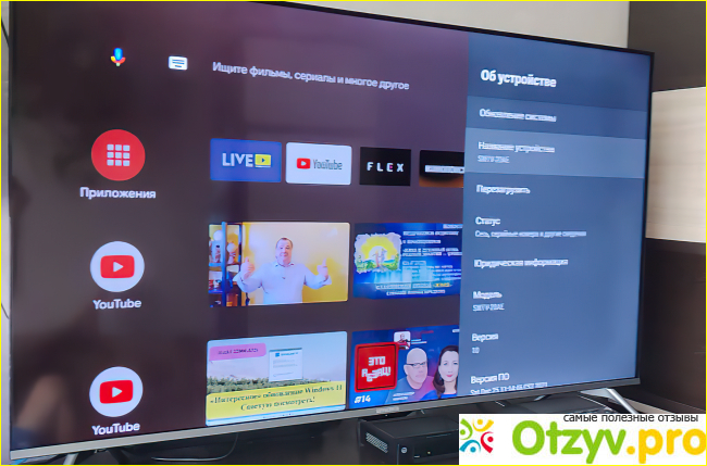 Телевизор работает под управлением Android TV 10-й версии. Ничего лишнего здесь нет. Имеется возможность настроить большое количество различных приложений. Здесь есть всё самое популярное включая YouTube, YouTube TV, Netflix, Apple TV+, Prime Video и так далее. Интерфейс не перегружен ненужными функциями. Сразу можно войти в настройки и быстро выбрать различные программы и приложения, чтобы их запустить. В общем классический вариант работы телевизора с андроидом на борту. Оперативной памяти 2 ГБ, а общей 16 гигабайт. Различных приложений более чем достаточно, ведь вы вряд ли будете подключать и закачивать сюда фильме. Это лучше сделать подсоединив по USB жесткий диск или запустив видео с домашнего медиацентра на компьютере.