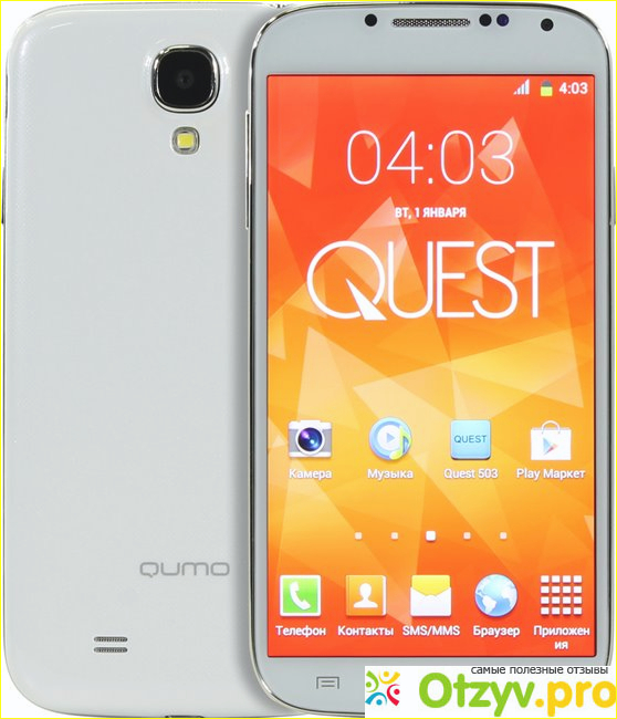 Досталось мне такое чудо, как Qumo Quest 530. Первое впечатление такое: телефон очень большой, в женской руке с трудом помещается. Если одна рука у вас занята, то второй, держа телефон в руке, ничего не сможете нормально напечатать.
