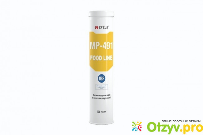 Это отличная смазка с пищевым допуском. К тоже, она устойчива к высоким температурам в печах. Еще эта паста устраняет рывки при движении разных деталей и механизмов в нашем оборудовании. Она белого цвета. А в своем составе она содержит минеральные масла и соединение твердых смазочных материалов.